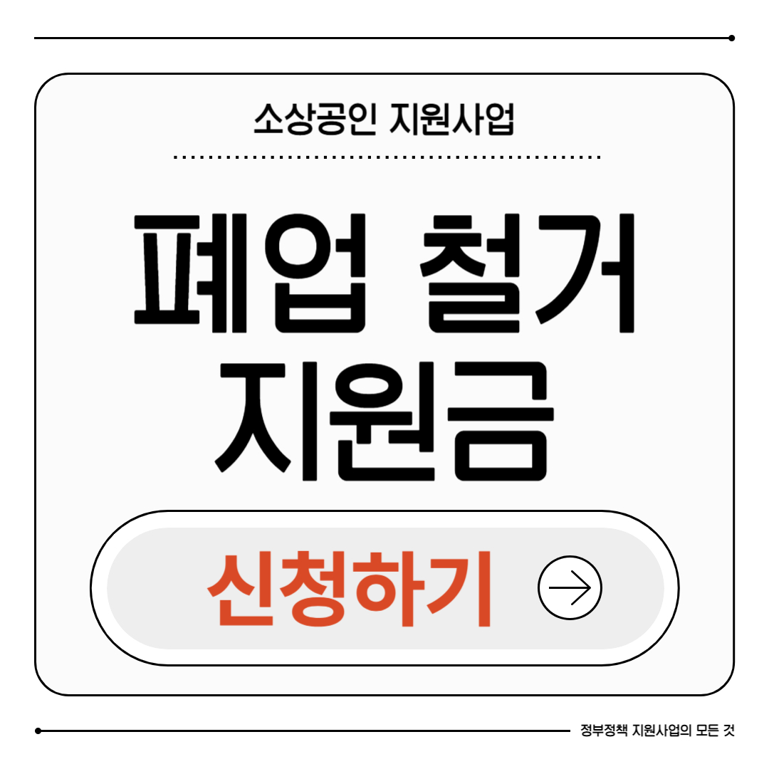 소상공인 폐업철거지원금 신청방법이 궁금하시다면 아래 버튼을 통해 2025년 최신 공고가 반영된 내용을 자세하게 확인하실 수 있습니다.